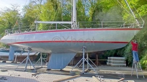 Détails voiles : - grand voile lattée de 45m2 ( +/- 20 ans en état d'usage bon) - génois sur enrouleur avec bande UV et chaussette de protection surface de 75 m2 (dacron très épais +/- 10 ans env. état d'usage très bon) - trinquette à endrailler sur étai largable inox + tourmentin (état d'usage très bon) - 1 spinnaker symétrique (état d'usage correct) - 1 spinnaker asymétrique (état d'usage bon) - gréement dormant remplacé en 2010 (tous les haubans) - l'étai avant a été remplacé en 2012 - pataras réglable diamètre 12mm - haubans diamètre 10 mm - 3 tangons - mât sloop en tête de 18.50 m - 2 étages de barres de flèches - nombreux winchs à l'arrière / au cockpit central et en pied de mât C'est un bateau de course des années 1980 / Allure au près et au près serré !!